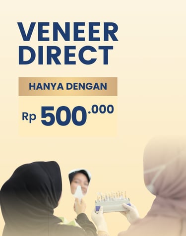 Sebaya Dental menawarkan solusi estetika terbaik untuk senyuman Anda dengan layanan veneer direct. Veneer direct adalah metode efektif untuk memperbaiki bentuk, ukuran, dan warna gigi secara instan. Dengan layanan ini, Anda bisa mendapatkan senyuman yang sempurna dengan cepat dan hasil yang tahan lama.