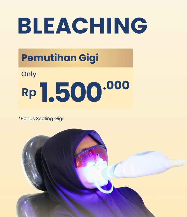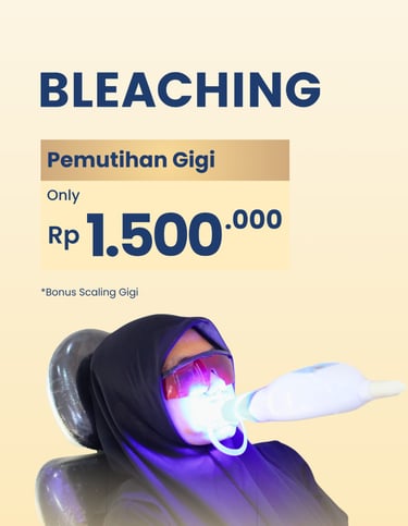 Sebaya Dental menghadirkan solusi untuk senyum yang lebih cerah dan menawan dengan layanan bleaching gigi berkualitas tinggi. Kami memahami betapa pentingnya memiliki gigi putih yang indah, oleh karena itu, kami menyediakan perawatan bleaching gigi yang efektif dan aman untuk membantu Anda mendapatkan senyuman yang Anda impikan.